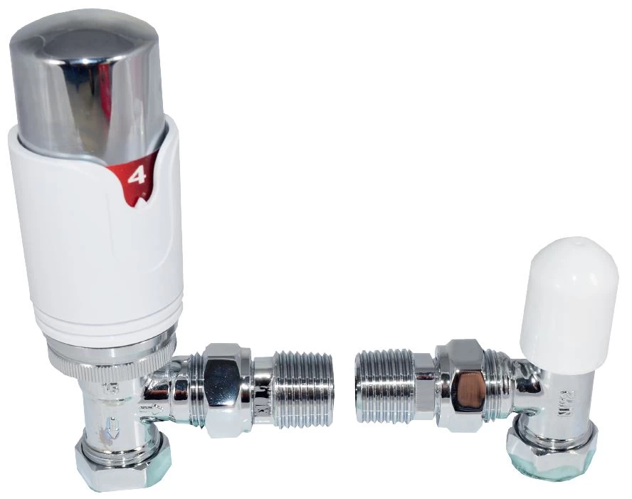 15mm Angled Chrome/White TRV & Lockshield Radiator Valves