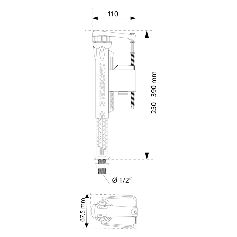 High-quality telescopic Toilet Fill valve replacement with 1/2 Inch Plastic thread to allow installation in most standard toilet cisterns.